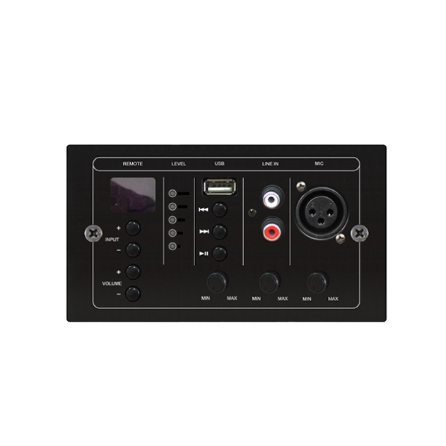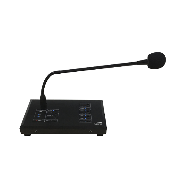 Sistema de audio digital multifunción 8×8 que permite la emisión de avisos en múltiples zonas como la selección de fuentes de audio de manera remota gracias al pupitre de avisos y los paneles murales de gestión de zona.
